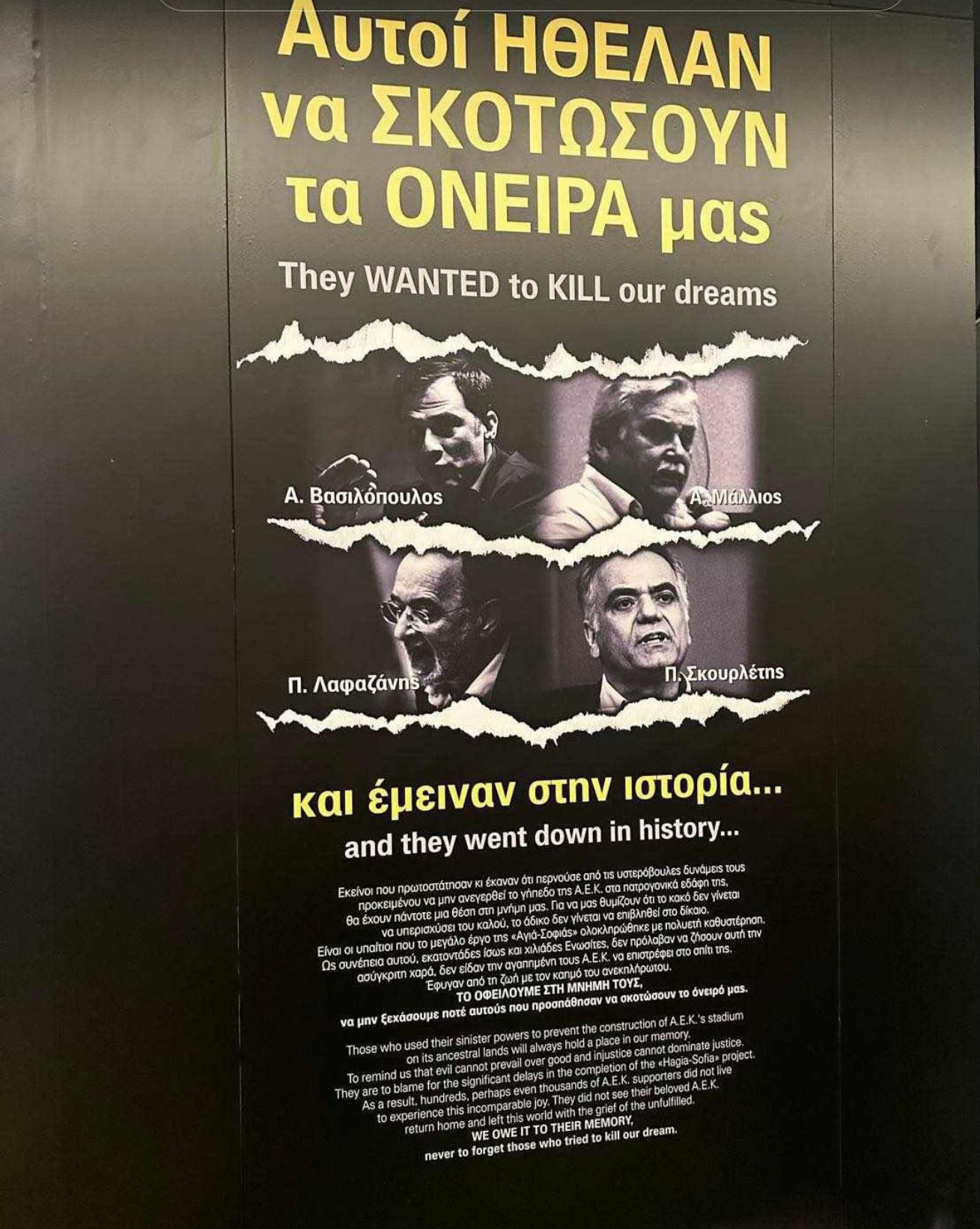 «Πολέμησαν το Όνειρο. Μα η ΑΕΚ δεν λυγίζει.»