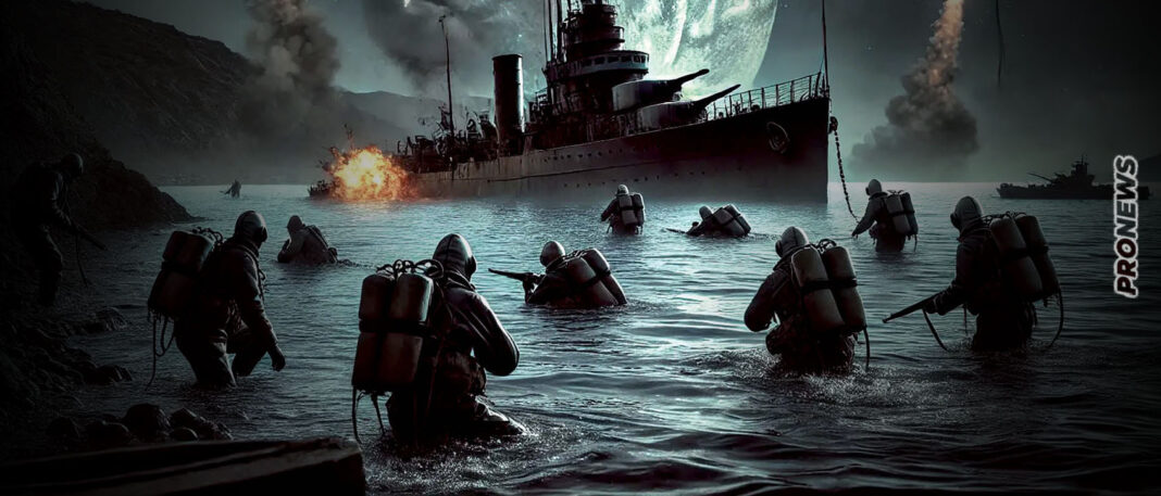 Προχώρησαν με τα σκάφη τους παράλληλα και με πλήρη ταχύτητα, στα 80 μέτρα περίπου από το πλοίο κατέστρεψαν τα πηδάλιά τους, έβγαλαν την ασφάλεια κι έπεσαν στο νερό.