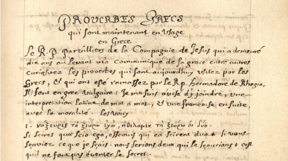 Καθηγητές από τη Νορβηγία και το Βέλγιο ανακάλυψαν στη Γαλλία χειρόγραφο με 90 άγνωστες ελληνικές παροιμίες του 17ου αιώνα, αποκαλύπτοντας ιστορικό θησαυρό.