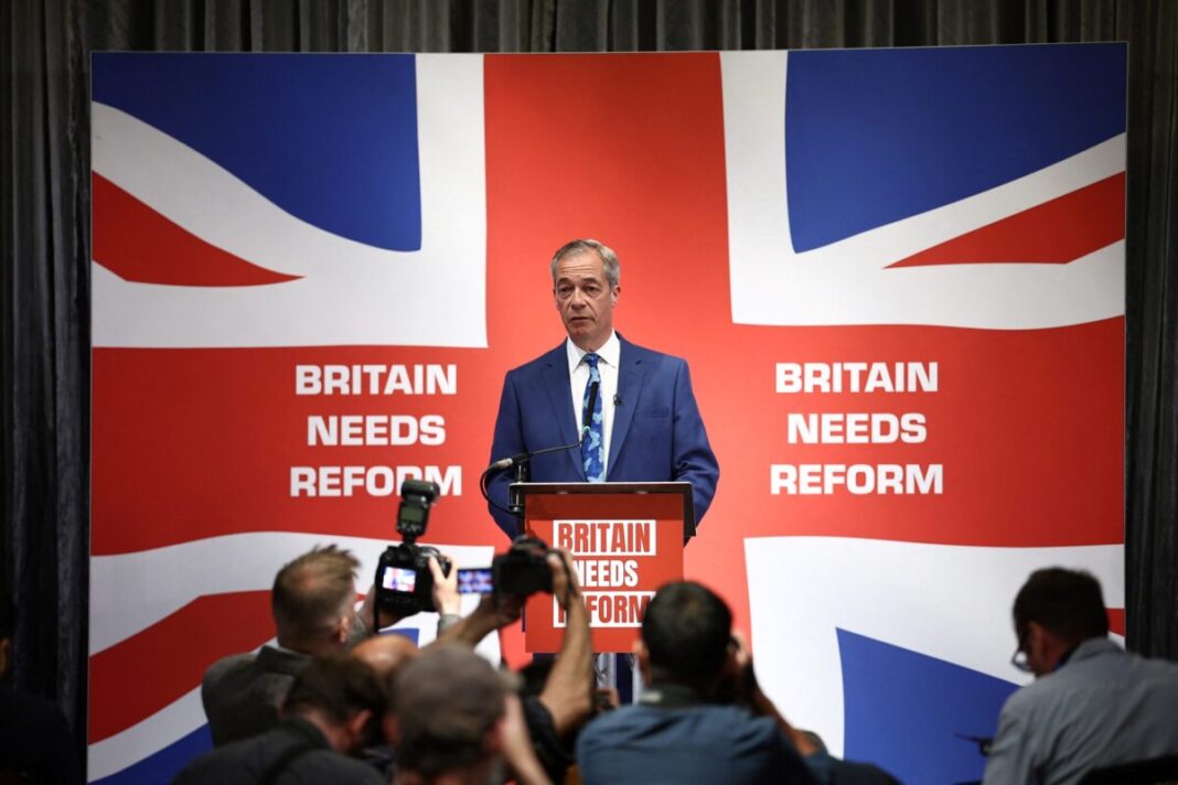 Δημοσκόπηση που δημοσιοποιήθηκε χθες Δευτέρα υποδεικνύει πως το ακροδεξιό, λαϊκιστικό κόμμα Reform UK, του οποίου ηγείται ο εκ των πρωταγωνιστών της εκστρατείας υπέρ του Brexit Νάιτζελ Φαράζ, προσελκύει το υψηλότερο ποσοστό των προθέσεων ψήφου, με άλλα λόγια αναδεικνύεται πρώτη πολιτική δύναμη στη Βρετανία, γεγονός άνευ προηγουμένου.