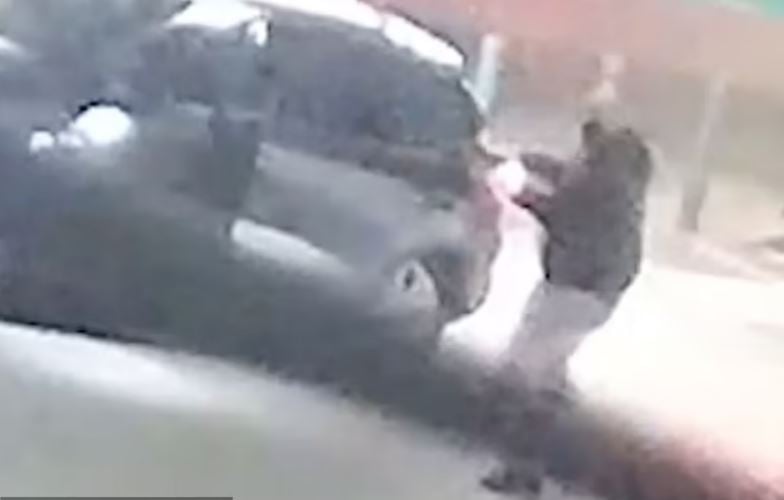 Στο βιντεοληπτικό υλικό από κάμερα ασφαλείας φαίνεται η στιγμή που ένα λευκό αυτοκίνητο σταματά απότομα σε μια πλατεία και αμέσως από το αμάξι και τη μεριά του οδηγού κατεβαίνει ένας ένοπλος που αρχίζει να πυροβολεί.