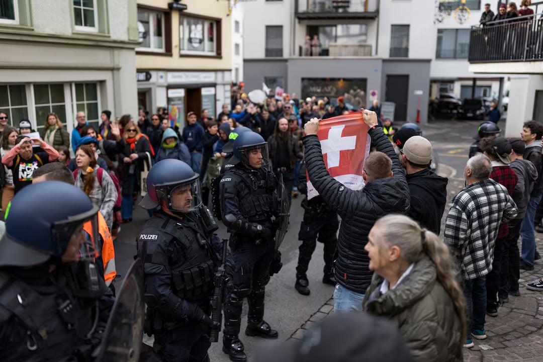 Όπως ανέφερε η αστυνομία του καντονιού Σβιτς, η ατμόσφαιρα ήταν τεταμένη, με προκλήσεις και μικροσυμπλοκές. Ωστόσο, οι αρχές κατάφεραν να αποτρέψουν σοβαρά επεισόδια, ενώ μέχρι το βράδυ του Σαββάτου δεν είχαν αναφερθεί τραυματισμοί ή ζημιές σε περιουσίες.