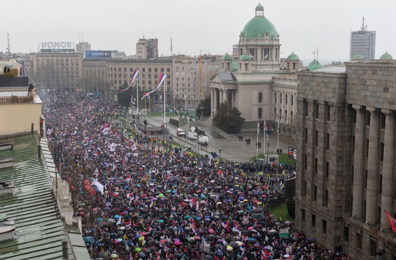 Στο Βελιγράδι, χιλιάδες διαδηλωτές συμμετείχαν σε μια μαζική συγκέντρωση κατά της διαφθοράς, με κινητήρια δύναμη τους Σέρβους φοιτητές. Η πορεία, που χαρακτηρίζεται ως η μεγαλύτερη στην ιστορία της Σερβίας, συγκέντρωσε πλήθος από διάφορες πολιτικές κατευθύνσεις, με το σύνθημα «Τρόμπα!