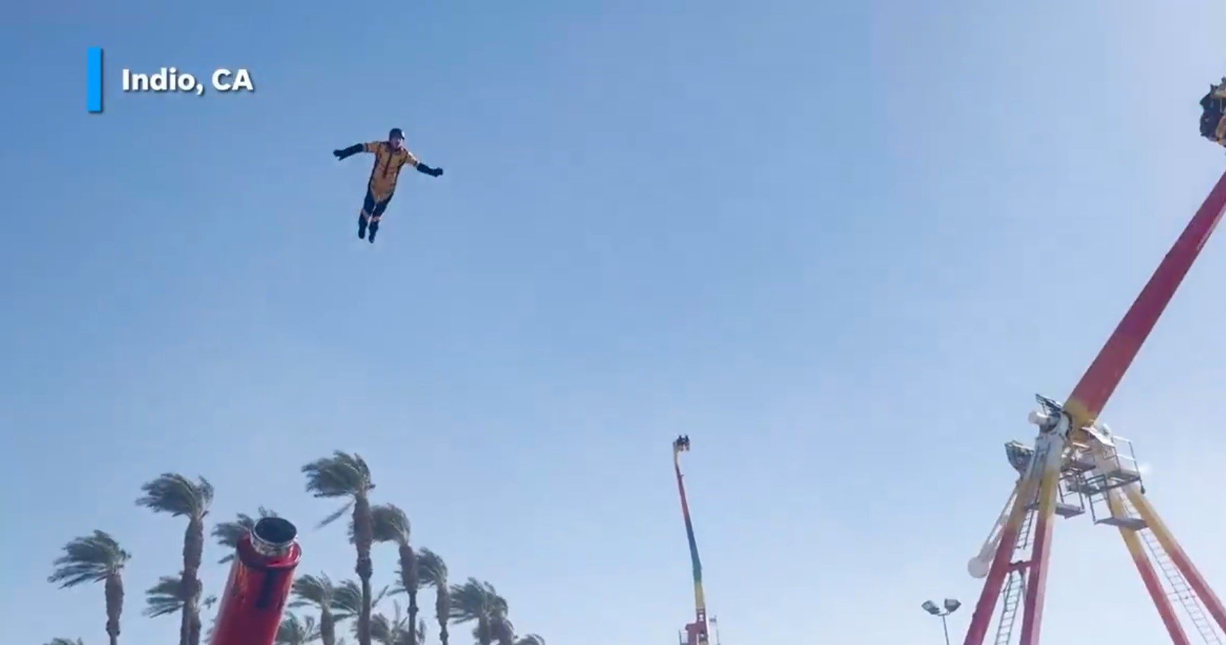 Ο Τσάτσι Βαλένθια, γνωστός ως The Rocketman Valencia, εκτελούσε το εντυπωσιακό του νούμερο στο Riverside County Fair and National Date Festival στην Ιντίο της Καλιφόρνια στις 2 Μαρτίου, όταν μια ισχυρή ριπή ανέμου τον έσπρωξε μακριά από το προκαθορισμένο σημείο προσγείωσης.