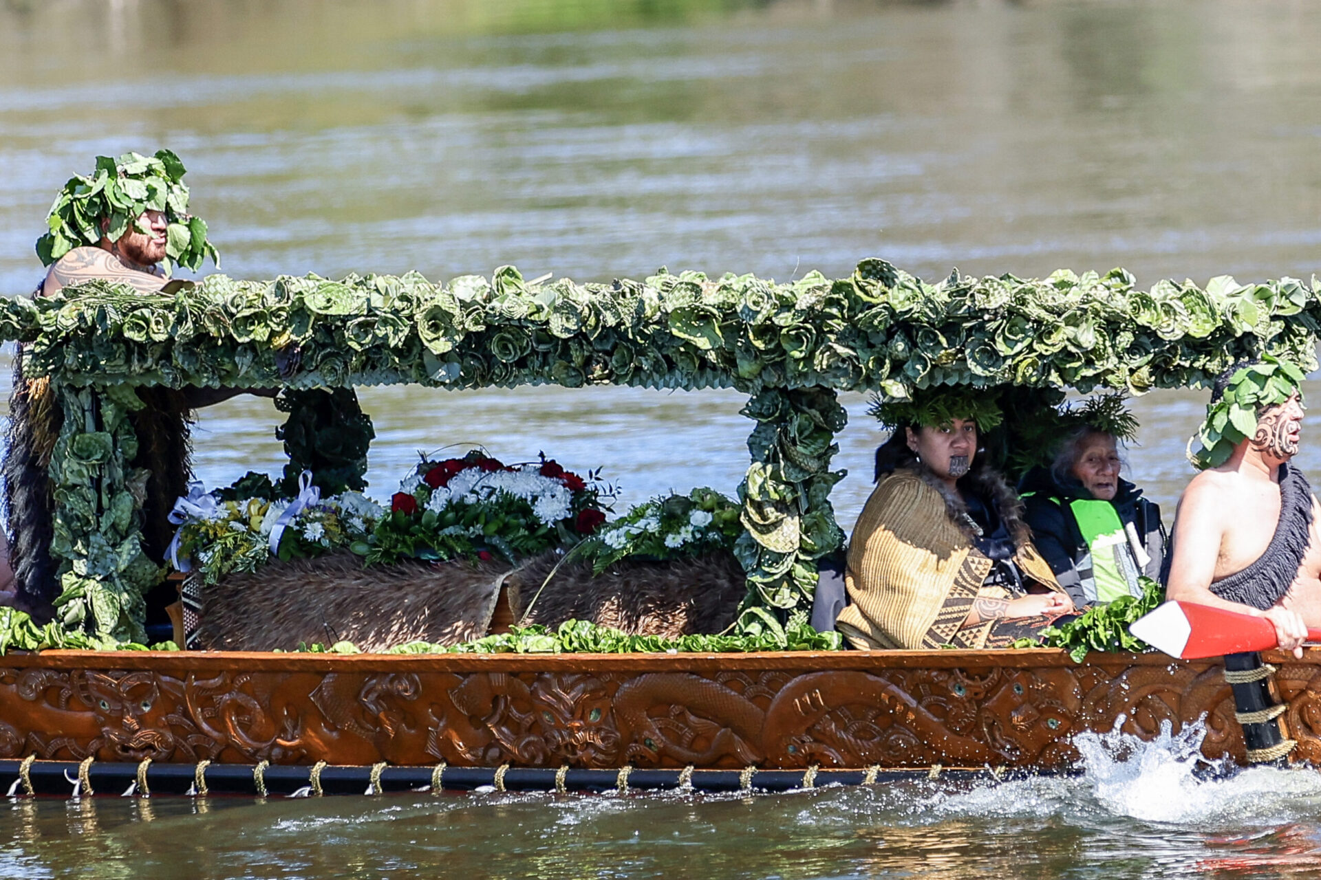 Η 27χρονη διάδοχος με στεφάνι από φτέρες και φύλλα kawakawa, οδηγήθηκε στο θρόνο από τη τιμητική φρουρά και τη τοπική φυλή Νγκάττι Μεχάνγκα, διασχίζοντας τον ποταμό Γουαϊκάτο.