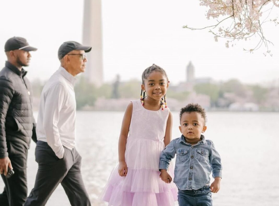 Η Πόρτια Μουρ, μητέρα του Πρέστον και της Μπελ, δημοσίευσε στο Instagram μια φωτογραφία των δύο παιδιών της να ποζάρουν μπροστά στις ανθισμένες κερασιές. Εξήγησε ότι πρόσεχε τα παιδιά της για να μην χτυπήσουν την ώρα της φωτογράφησης αλλά ο σύζυγός της είδε να περνάει από μπροστά τους ο Μπαράκ Ομπάμα.