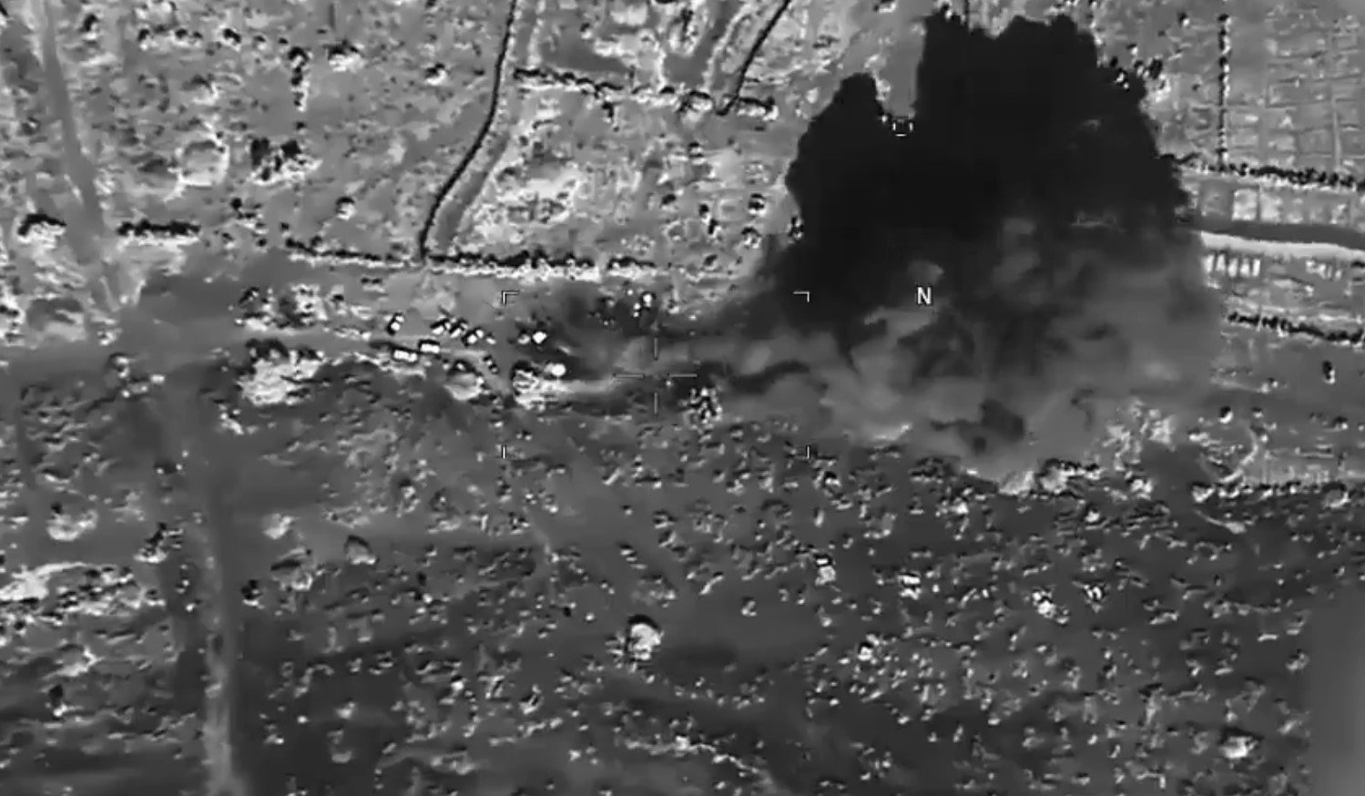 Οι εικόνες, ασπρόμαυρες, τραβηγμένες από ψηλά —κατά πάσα πιθανότητα από στρατιωτικό drone— δείχνουν δεκάδες ανθρώπους που έχουν σχηματίσει κύκλο, προτού πέσει βόμβα.
