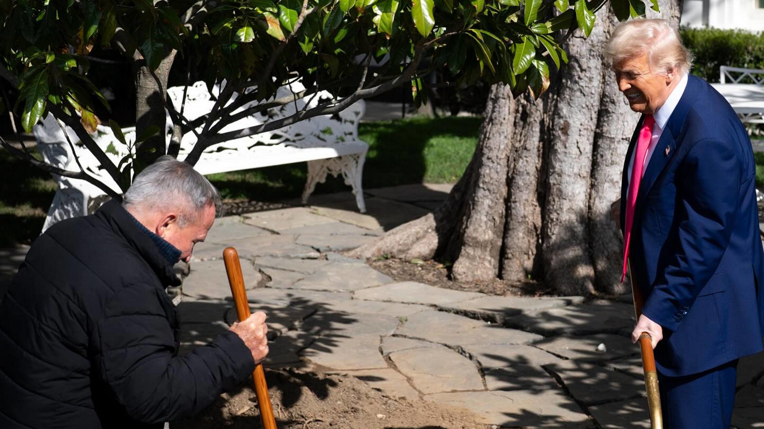 Ο Τραμπ φυτεύει με χρυσό φτυάρι τη νέα μανόλια στον Λευκό Οίκο, διατηρώντας την ιστορική παράδοση του δέντρου του Άντριου Τζάκσον