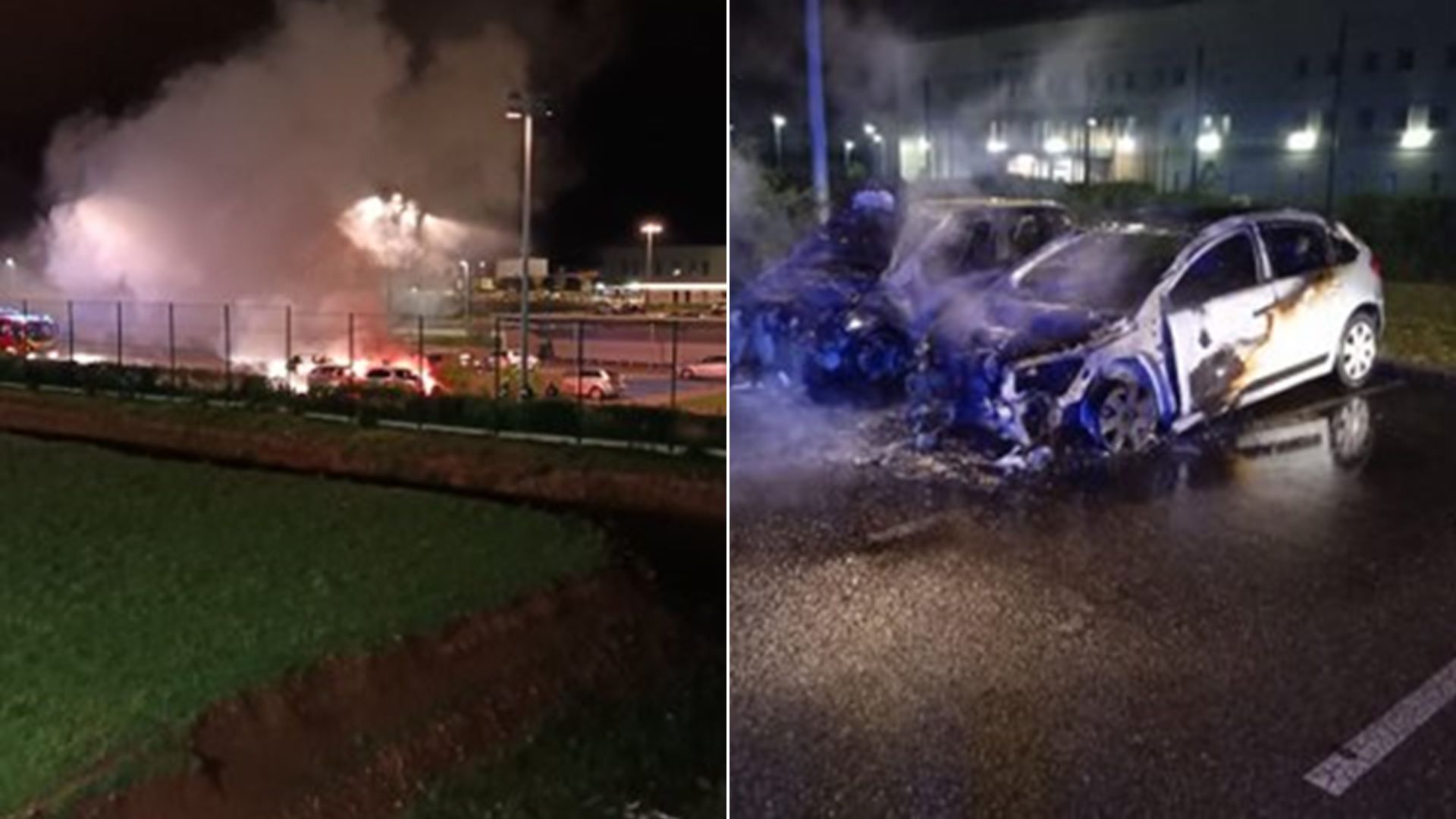 Λίγο αργότερα, γύρω στις 22:30, δύο άνδρες φέρεται να πυρπόλησαν τρία οχήματα στο πάρκινγκ της φυλακής στη Βιλεπάντ, τα δύο εκ των οποίων ανήκαν επίσης σε σωφρονιστικούς υπαλλήλους. Και εκεί βρέθηκε μπιτόνι βενζίνης.
