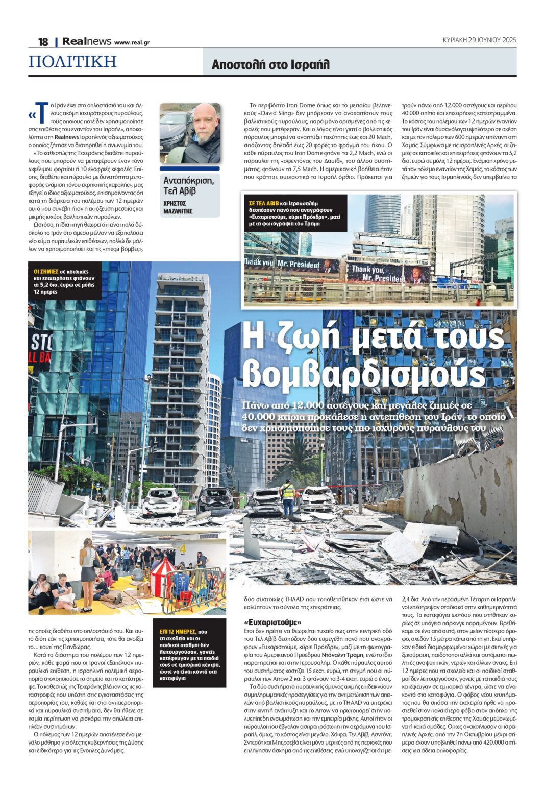 Το παρασκήνιο της εκεχειρίας και πώς ο Τραμπ αλλάζει τους γεωπολιτικούς όρους στην περιοχή. Αποστολή στο Ισραήλ: Η ζωή μετά τους βομβαρδισμούς.