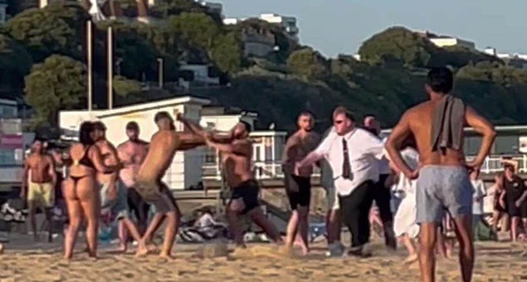 Σε μια πολυσύχναστη παραλία στο Bournemouth της Βρετανίας, μια άγρια συμπλοκή μεταξύ δύο ομάδων λουόμενων προκάλεσε αναστάτωση και γέλια στους παρευρισκόμενους. Καθώς η θερμοκρασία άγγιζε τους 30 βαθμούς Κελσίου, σχεδόν δώδεκα άτομα αντάλλαξαν χτυπήματα στην άμμο, με αποτέλεσμα να σκοντάφτουν και να πέφτουν, προκαλώντας αστείες σκηνές. Παρά τις προσπάθειες δύο σωματοφυλάκων να διατηρήσουν την τάξη, οι εμπλεκόμενοι συνέχισαν να χτυπιούνται αδέξια, μετατρέποντας το περιστατικό σε θέαμα για τους υπόλοιπους λουόμενους.