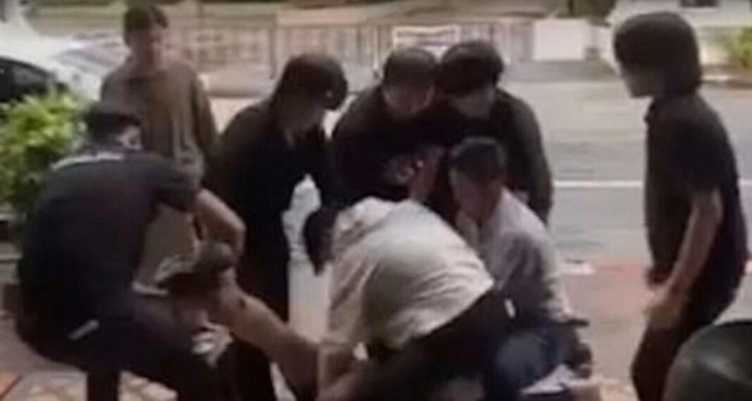 Σε βίντεο που κυκλοφόρησε στα μέσα κοινωνικής δικτύωσης, φαίνονται υπάλληλοι να προσπαθούν να σκίσουν το πουκάμισο του τουρίστα έξω από την είσοδο του μπαρ, ενώ άλλοι τον κρατούν από τα χέρια και τα πόδια και τον κλωτσούν επανειλημμένα, καθώς εκείνος προσπαθεί να προστατευτεί.