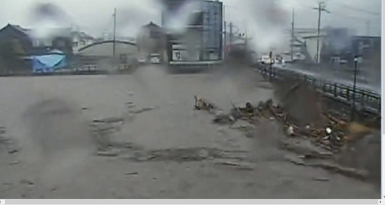 Σε πλάνα που μεταδόθηκαν από την ιαπωνική δημόσια τηλεόραση NHK, διακρίνεται δρόμος που έχει βυθιστεί κάτω από τα νερά στην Ουατζίμα.