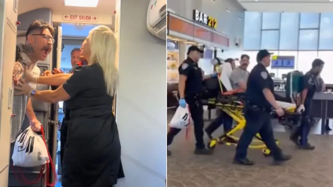 Βίντεο: Μαχητής του MMA σπέρνει πανικό σε πτήση απειλώντας επιβάτες και πλήρωμα – Η αστυνομία τον απομακρύνει με φορείο