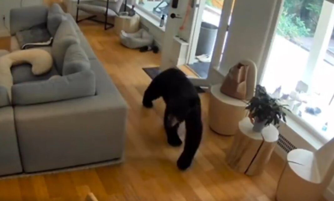 Στο βιντεοληπτικό υλικό που έχει τραβηχτεί από κάμερα ασφαλείας εντός του σπιτιού, φαίνεται η στιγμή που μια μαύρη αρκούδα, μπαίνει στο σαλόνι ενός σπιτιού. Όπως μπορεί να δει κανείς, η αρκούδα εκμεταλλεύεται το γεγονός ότι μια μπαλκονόπορτα είναι ανοιχτή και αποφασίζει – για κακό του κεφαλιού της – να προχωρήσει στα ενδότερα του σπιτιού, μάλλον στην αναζήτηση τροφής.