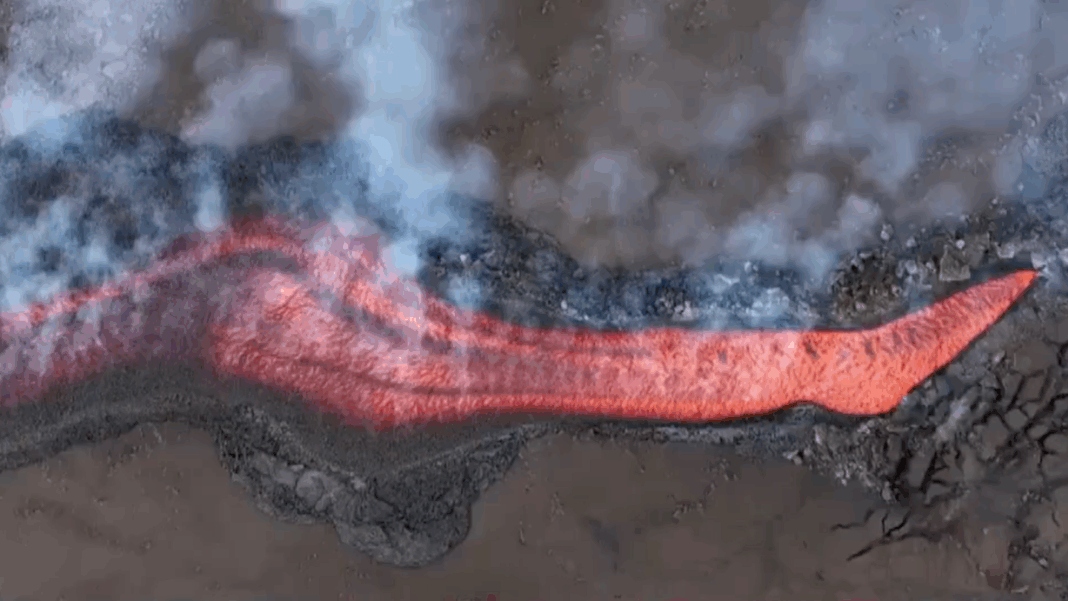 Το φαινόμενο καταγράφηκε σε εντυπωσιακό βίντεο από drone, ενώ το ρήγμα εντοπίστηκε περίπου στα 3.000 μέτρα υψόμετρο, με τη λάβα να φτάνει μέχρι τα 2.900 μέτρα.