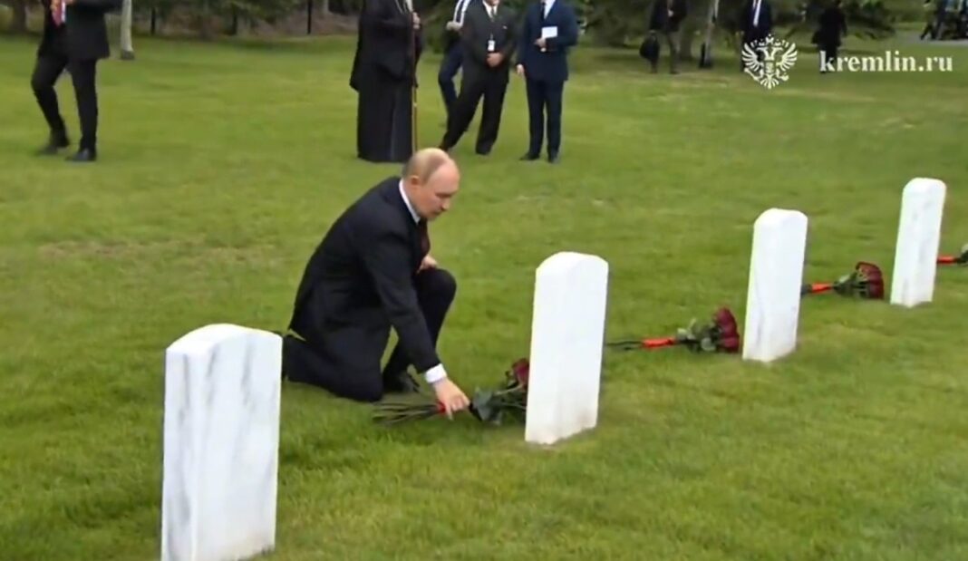 Ο Ρώσος πρόεδρος Βλαντιμίρ Πούτιν, πριν αναχωρήσει από το Άνκορατζ της Αλάσκας, κατέθεσε λουλούδια στους τάφους σοβιετικών στρατιωτών στο Κοιμητήριο Fort Richardson Memorial.