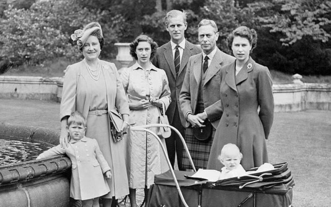 Άλλη εικόνα δείχνει την βασίλισσα Ελισάβετ με την μητέρα της, την αδελφή της, πριγκίπισσα Μαργαρίτα, τον πρίγκιπα Φίλιππο και τον πατέρα της, βασιλιά Γεώργιο ΣΤ’. Ο βασιλιάς Κάρολος βρίσκεται στην αγκαλιά της γιαγιάς του, ενώ η πριγκίπισσα Άννα σε ένα καρότσι.