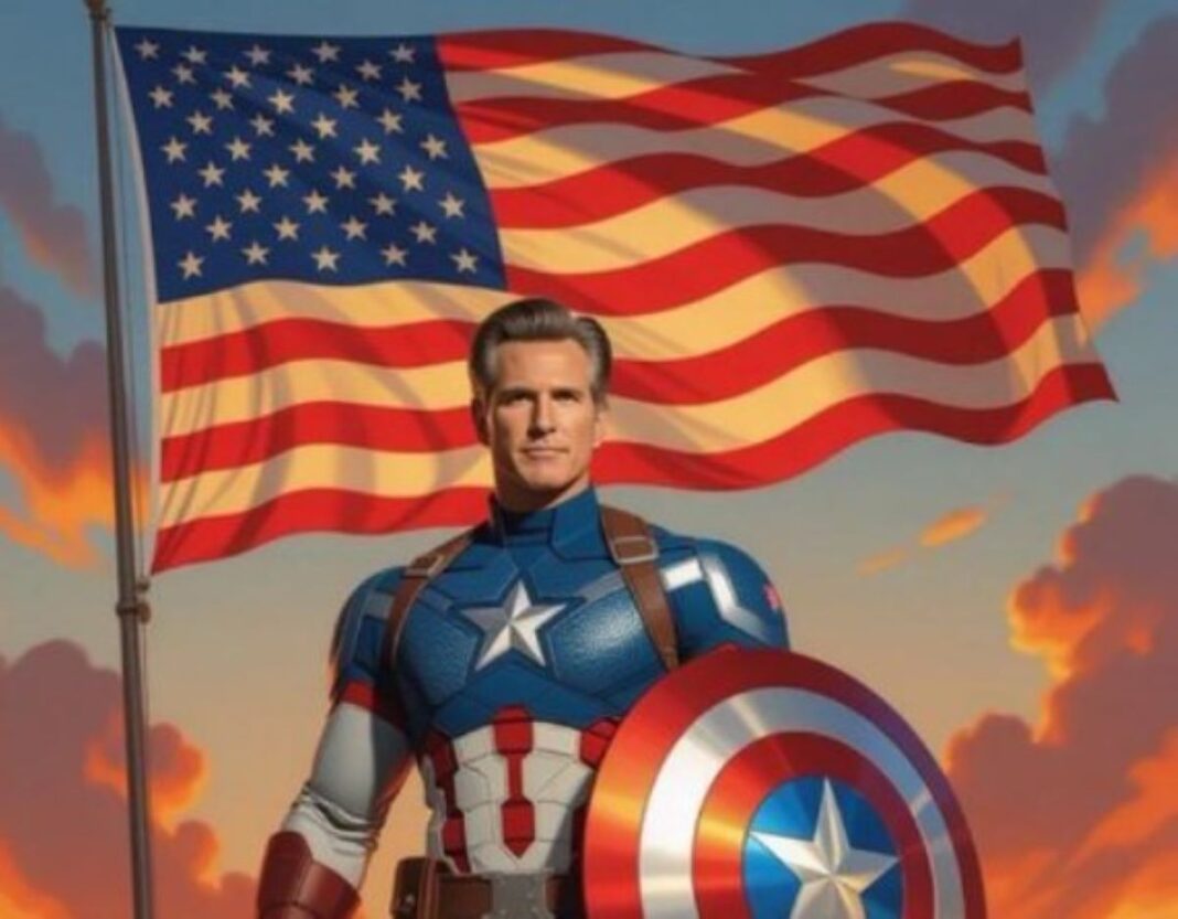 Συγκεκριμένα κάνει αναρτήσεις με κεφαλαία γράμματα, λέξεις σήμα κατατεθέν του Τραμπ και ύφος που θυμίζει τον Αμερικανό πρόεδρο. Παράλληλα μία σειρά εικόνων που δημιουργήθηκαν με ΑΙ και memes δείχνουν τον Νιούσομ να παριστάνει τον ήρωα της Αμερικής στα πρότυπα του Τραμπ. Σε memes φαίνεται ο κυβερνήτης της Καλιφόρνια να ιππεύει αρκούδες, δεινόσαυρους και να μάχεται για να κάνει την «Καλιφόρνια Μεγάλη Ξανά». Σε άλλα φοράει την στολή του σούπερ ήρωα της Marvel, Κάπτεν Αμέρικα ή κρατάει όπλα σε ρόλο «Εξολοθρευτή».