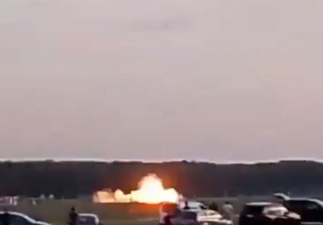 🚨#BREAKING Watch horrifying footage as a F-16 fighter jet crashes bursting in flames training for a upcoming Air Show ⁰⁰📌#Sadków | #Poland⁰