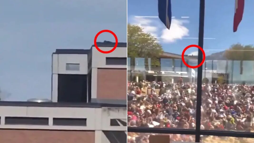 Άλλη λήψη από τον χώρο, λίγο πριν από τον πυροβολισμό, φαίνεται να δείχνει έναν άνθρωπο ξαπλωμένο σε θέση ελεύθερου σκοπευτή στην ταράτσα, στο σημείο όπου εκδηλώθηκε η επίθεση, ενώ παρευρισκόμενοι απορούσαν τι ακριβώς βλέπουν.