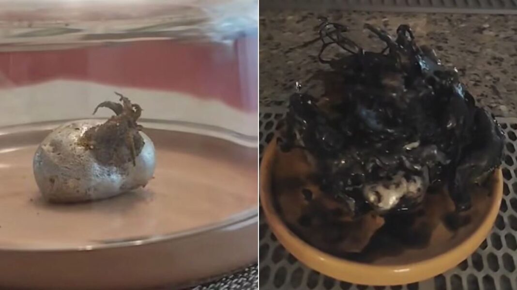 Ο χρήστης του TikTok με το όνομα Kin δημοσίευσε πλάνα όπου φαίνεται να αναδύονται πλοκάμια, κινούμενα με ταχύτητα, μέσα από μια ασημί μάζα, που πολλοί παρομοίασαν με «βαμμένη πατάτα».