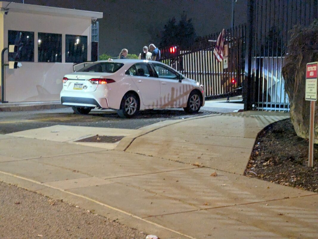 Σύμφωνα με τα όσα μεταδίδει το Associated Press, ο οδηγός έβγαλε μια αμερικανική σημαία από το πίσω κάθισμα και την πέταξε πάνω από την πύλη, ενώ στη συνέχεια έφυγε από την περιοχή, όπως ανέφεραν οι αρχές.