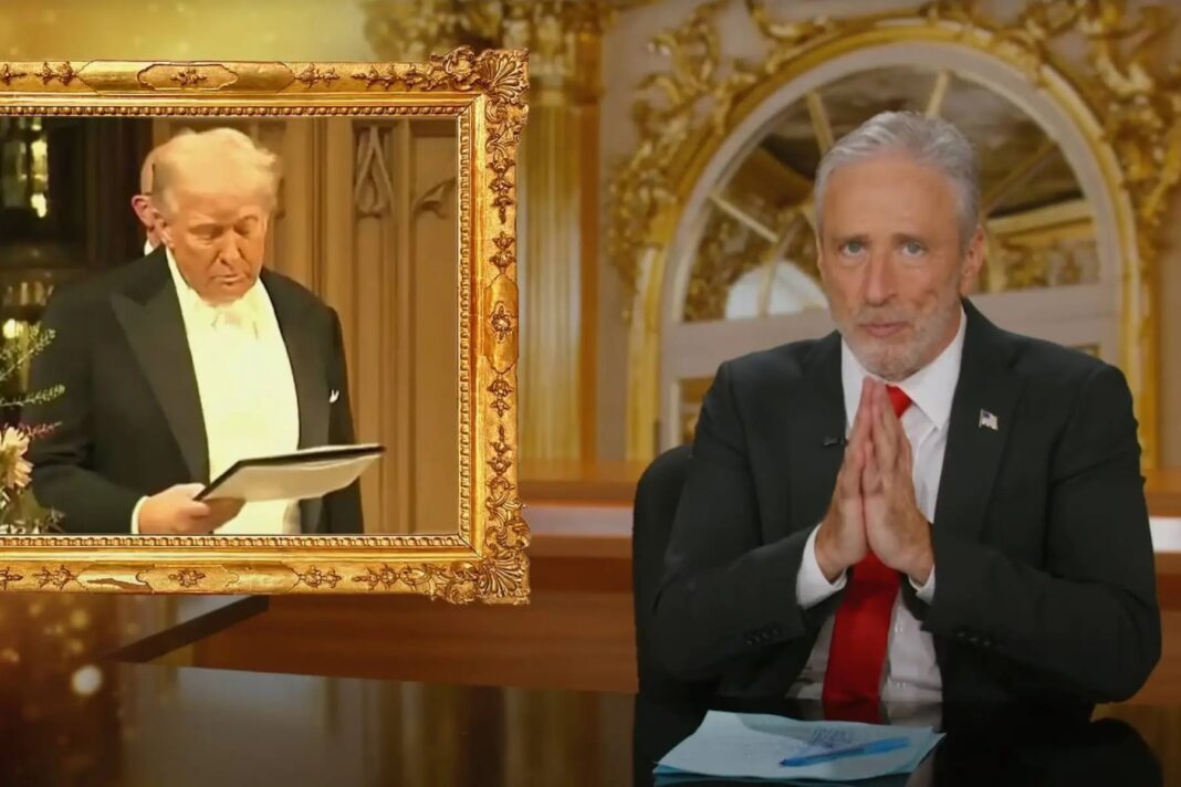 Σε ένα σκηνικό διακοσμημένο με χρυσό, ο Στιούαρτ σατίρισε επανειλημμένα τον Τραμπ, αποκαλώντας τον «άρχοντα» και «πατέρα». Αποφύγετε σκόπιμα πιθανές προσβολές, όπως να διαφωνήσει με τον Πρόεδρο των ΗΠΑ ή οποιονδήποτε από τους υποστηρικτές του