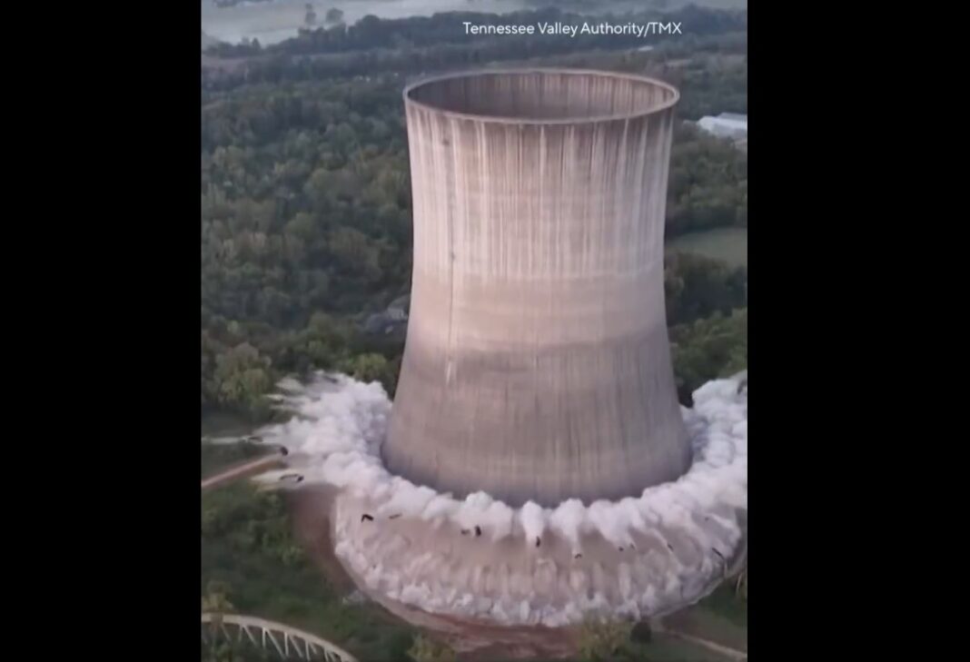 Στο Χάρτσβιλ του Τενεσί, ένας πυρηνικός πύργος ψύξης ύψους 540 ποδιών κατεδαφίστηκε με ελεγχόμενη έκρηξη, προσφέροντας θεαματικές εικόνες.