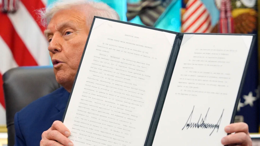 Ο Ντόναλντ Τραμπ υπέγραψε εκτελεστικό διάταγμα που επιτρέπει στο TikTok να συνεχίσει να λειτουργεί στις Ηνωμένες Πολιτείες, θεωρώντας τη συμφωνία ως πώληση που καλύπτει τις απαιτήσεις εθνικής ασφάλειας.