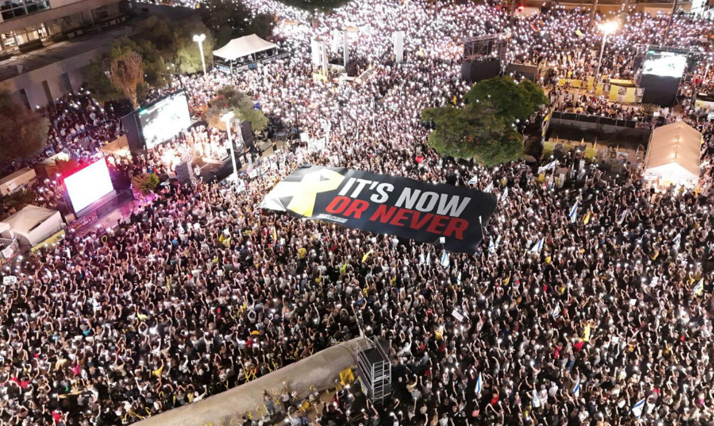 Το βράδυ του Σαββάτου δεκάδες χιλιάδες άνθρωποι διαδήλωσαν στο Τελ Αβίβ το βράδυ του Σαββάτου υπέρ της συμφωνίας κατάπαυσης του πυρός και απελευθέρωσης των ομήρων, καθώς η πρόταση των ΗΠΑ για τον τερματισμό του πολέμου στη Γάζα φαίνεται να προχωράει, όπως σημειώνουν οι Times of Israel. «Τώρα ή ποτέ», έγραφε πάνω σε ένα τεράστιο πανό που κρατούσε πλήθος κόσμου, με τον ίδιο τον πρόεδρο των ΗΠΑ Ντόναλντ Τραμπ να αναδημοσιεύει φωτογραφίες από το πανό που απλώθηκε στην πλατεία Ομήρων.