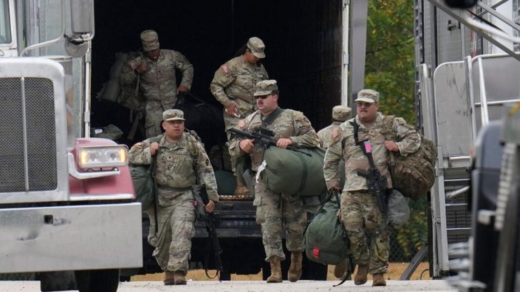 Περίπου 200 μέλη της Εθνοφρουράς από το Τέξας (νότια) και άλλα 300 μέλη του σώματος εφεδρείας από το Ιλινόι στάλθηκαν στο Σικάγο, σύμφωνα με δεδομένα των αμερικανικών ενόπλων δυνάμεων.