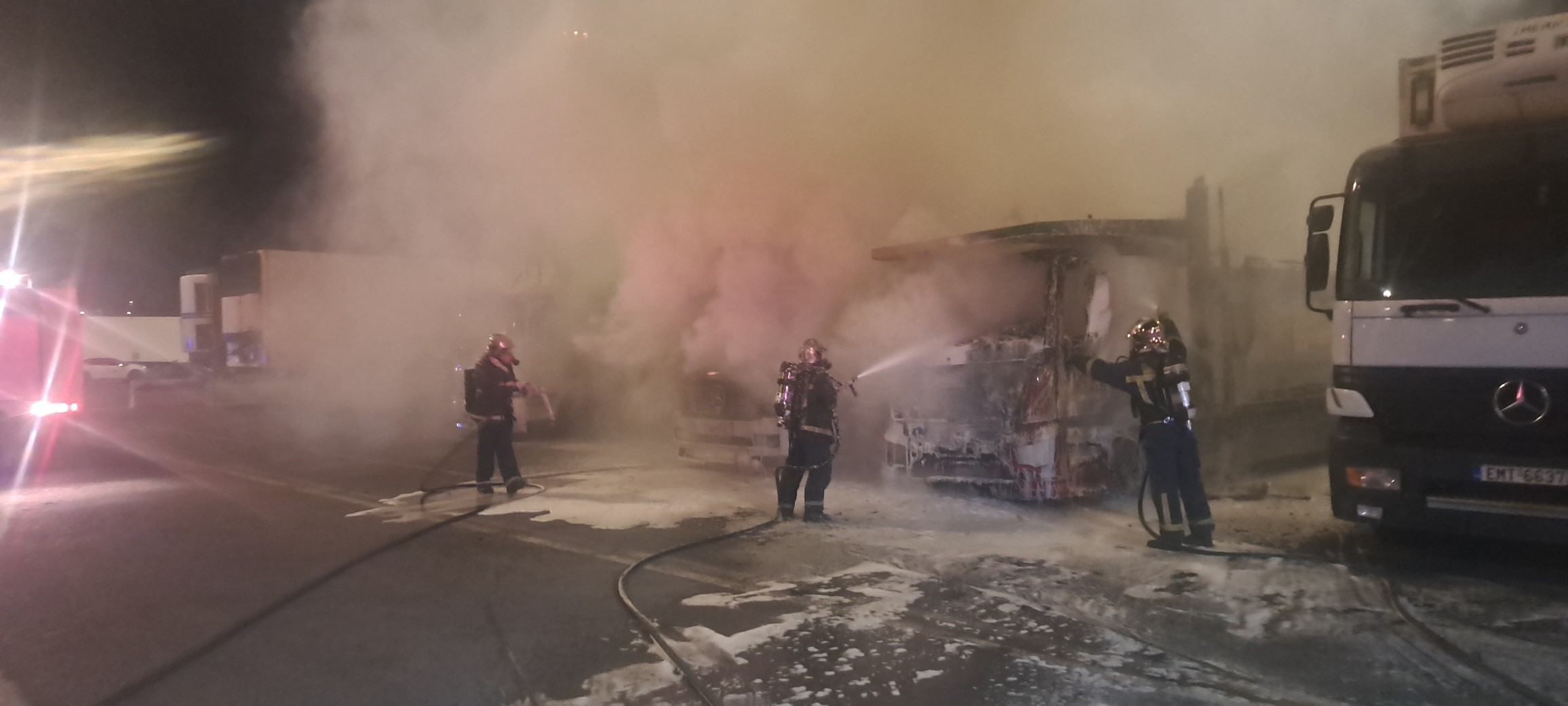 Σύμφωνα με πληροφορίες του cretapost, το περιστατικό σημειώθηκε λίγο πριν από τις 11:30 το βράδυ του Σαββάτου, όταν τα δύο φορτηγά που ήταν σταθμευμένα, έγιναν παρανάλωμα του πυρός.