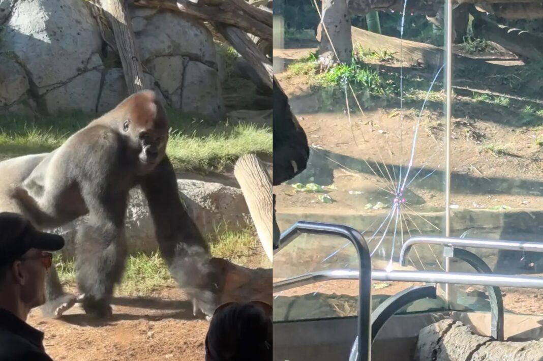 Σε ζωολογικό κήπο της Καλιφόρνιας, ένας γορίλας προκάλεσε πανικό όταν έσπασε ένα τμήμα του ενισχυμένου γυάλινου πάνελ του κλουβιού του, μπροστά στους τρομαγμένους επισκέπτες.