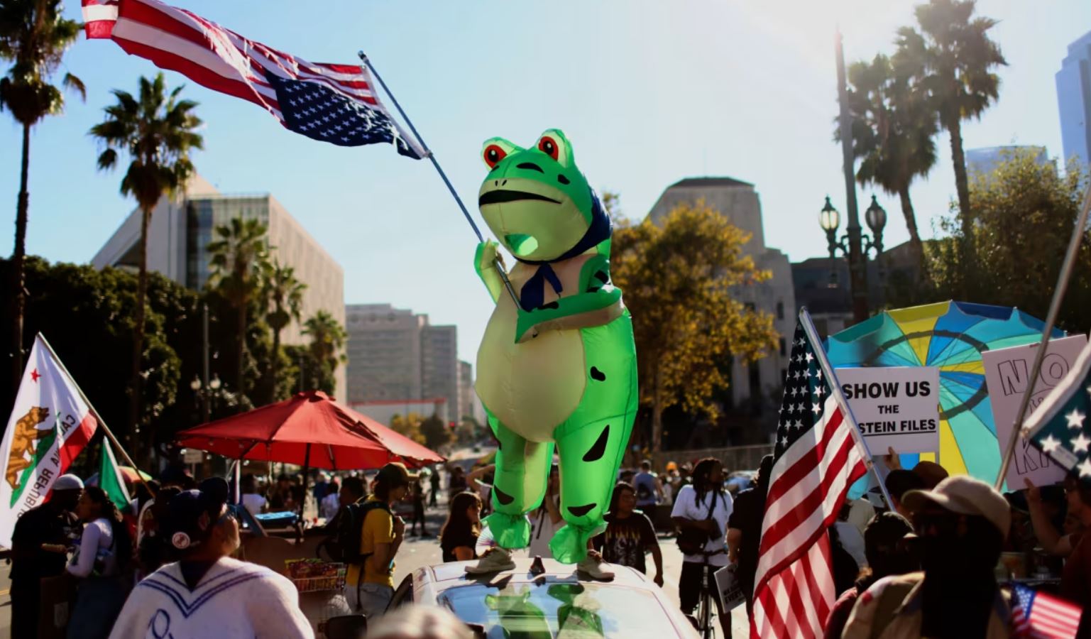 «Ποτέ δεν πίστευα ότι θα ζούσα για να δω το θάνατο της χώρας μου ως δημοκρατία», δήλωσε η 69χρονη συνταξιούχος Κόλιν Χόφμαν στο AFP, καθώς διαδήλωνε στη Νέα Υόρκη. «Βρισκόμαστε σε κρίση – η σκληρότητα αυτού του καθεστώτος, ο αυταρχισμός. Αισθάνομαι ότι δεν μπορώ να κάθομαι στο σπίτι και να μην κάνω τίποτα». Στο Λος Άντζελες, οι διαδηλωτές έβαλαν ένα γιγαντιαίο μπαλόνι με τον Τραμπ να φοράει πάνα.