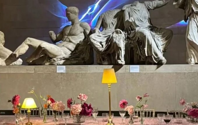 Η επιλογή του Βρετανικού Μουσείου να χρησιμοποιήσει την αίθουσα όπου φιλοξενούνται τα Γλυπτά του Παρθενώνα για δείπνο υψηλής κοινωνίας προκάλεσε αντιδράσεις στην Ελλάδα, καθώς η Αθήνα διεκδικεί εδώ και δεκαετίες την επιστροφή τους.