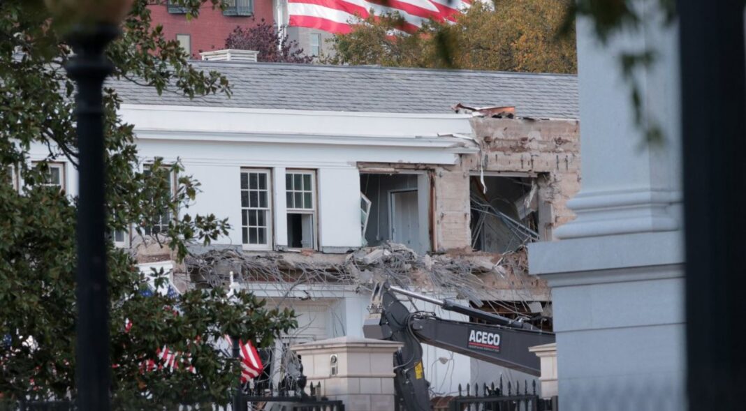 Παράλληλα, ο Λευκός Οίκος υποστηρίζει ότι δεν απαιτείται έγκριση από την Εθνική Επιτροπή Σχεδιασμού Πρωτεύουσας για τις εργασίες κατεδάφισης, αλλά μόνο για τις νέες κατασκευές.