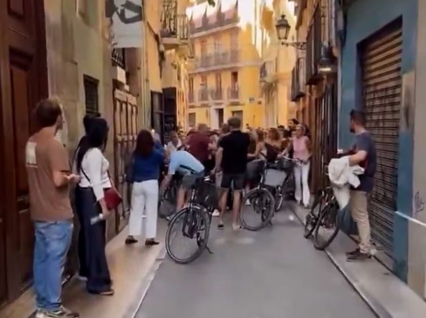 Ισπανοί πολίτες περικύκλωσαν και προπηλάκισαν τουρίστες, στην Βαλένθια και τους φώναξαν να “βγουν έξω”, από την παλιά πόλη, στην οποία είχαν μπει με ποδήλατα. Οι τουρίστες με τα ποδήλατα και οι Ισπανοί διαδηλωτές συναντήθηκαν σε ένα στενό δρόμο, στην υπερκορεσμένη παλιά πόλη και σχεδόν ήρθαν στα χέρια.