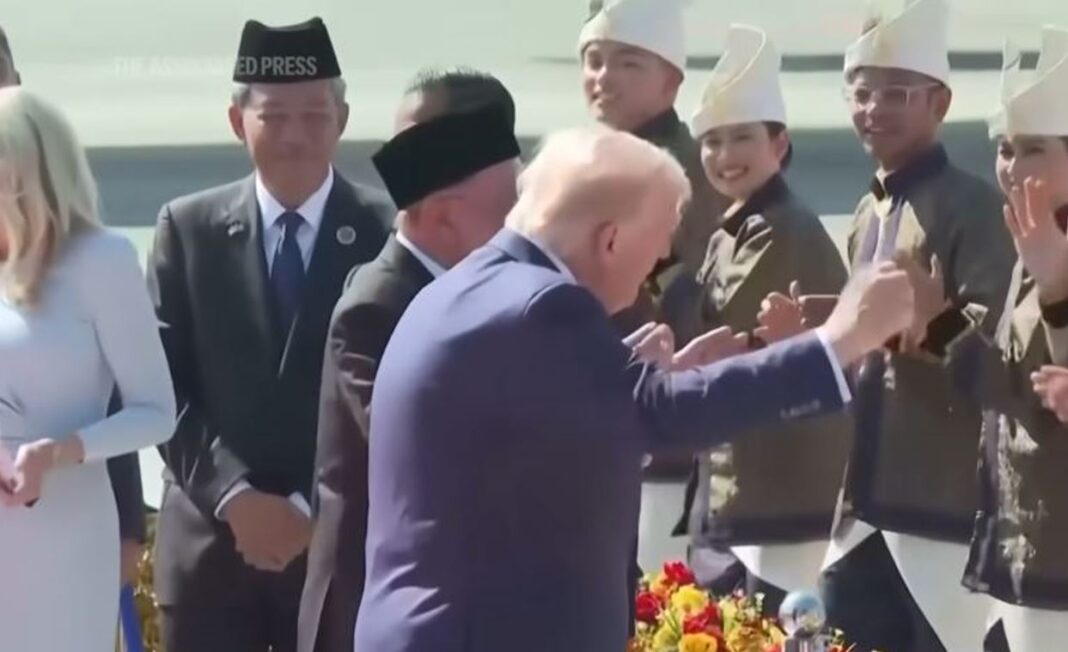 Ο Ντόναλντ Τραμπ, κατά την άφιξή του στη σύνοδο της ASEAN στην Κουάλα Λουμπούρ, υπέγραψε σημαντικές συμφωνίες με εταίρους από τη Νοτιοανατολική Ασία. Η υποδοχή του στη Μαλαισία ήταν ιδιαίτερα θερμή, με μουσική και χορό, και ο Αμερικανός πρόεδρος δεν δίστασε να συμμετάσχει, χορεύοντας με καλλιτέχνες που φορούσαν παραδοσιακές στολές. Το στιγμιότυπο από τον χορό του Τραμπ δημοσιεύθηκε από τον Λευκό Οίκο στο «X», συνοδευόμενο από τη λεζάντα «Ο χορός του Τραμπ, μαλαισιανή εκδοχή».
