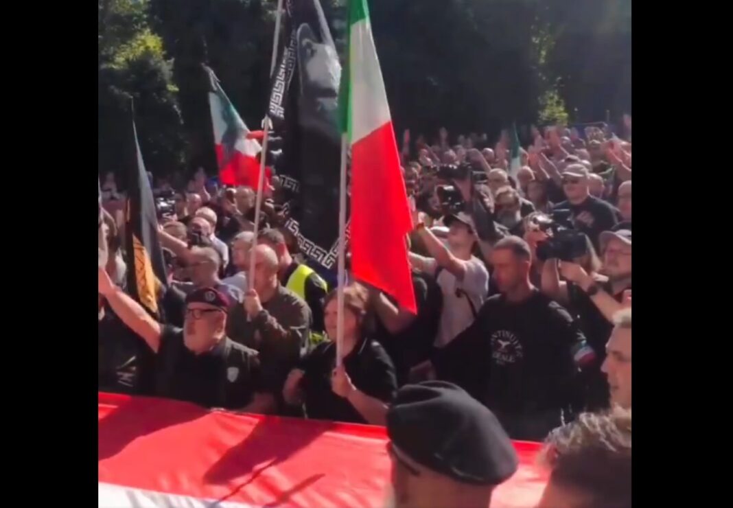 Italians and others gathered in Predappio to commemorate the March on Rome. They gave the Roman salute and and pro-Mussolini chants. pic.twitter.com/fKtsYUZbM6