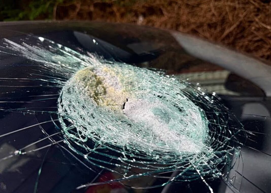 Παρά τις αρχικές αμφιβολίες, το λιωμένο γυαλί και οι αποχρωματισμοί στο παρμπρίζ υποδηλώνουν ότι κάτι καυτό το χτύπησε.