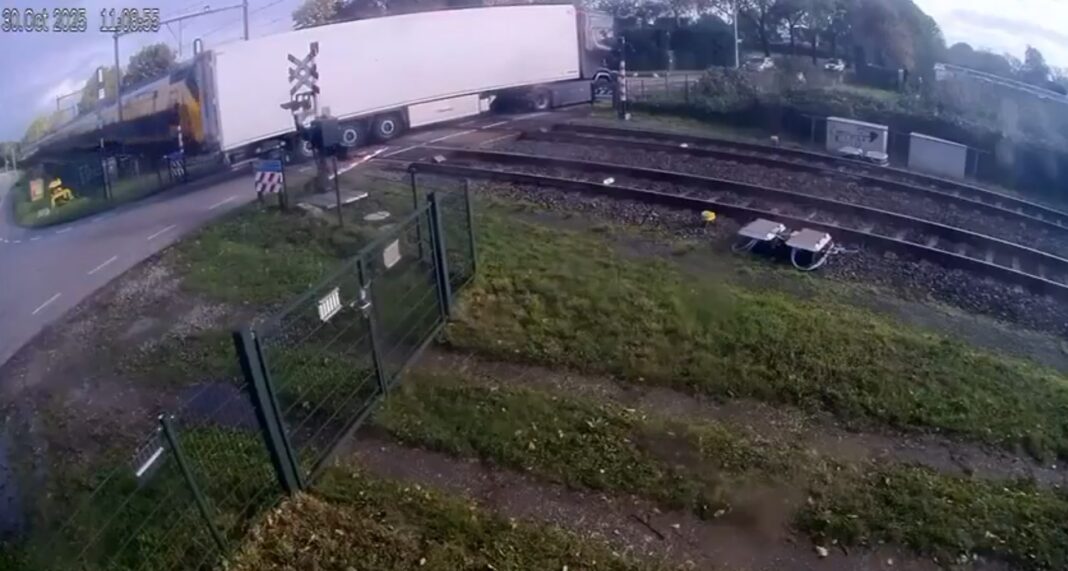 Σφοδρή σύγκρουση τρένου με νταλίκα στην Ολλανδία: Στιγμές αγωνίας καταγεγραμμένες από κάμερα ασφαλείας όταν το φορτηγό εγκλωβίστηκε στις ράγες