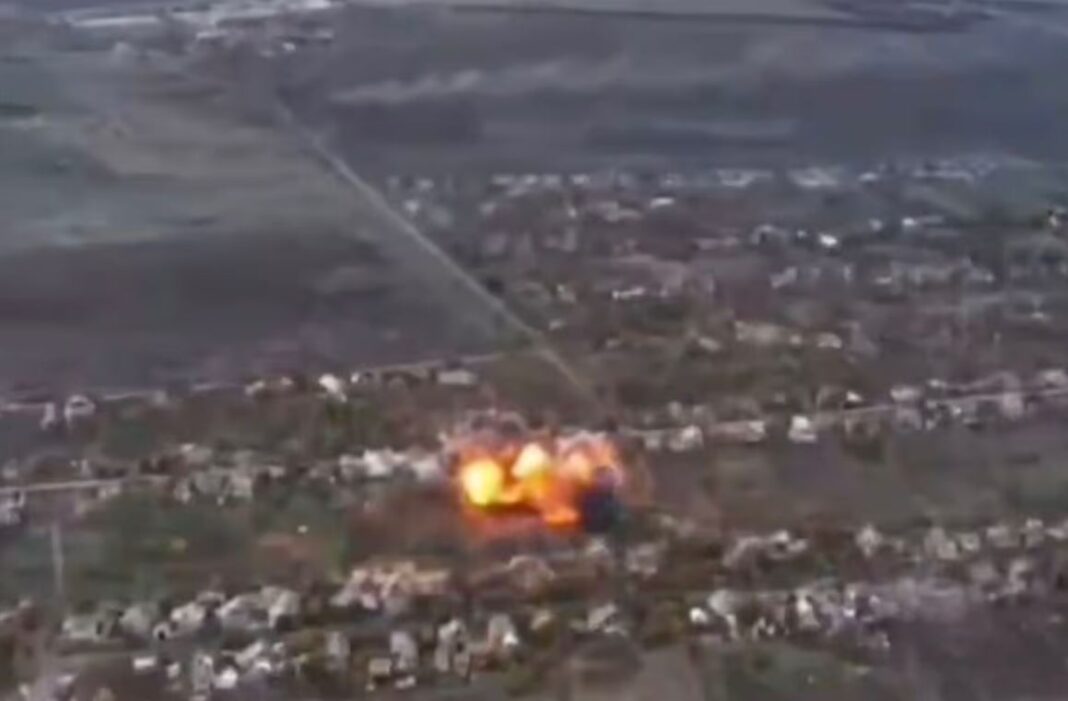 Μια ρωσική βόμβα FAB-1500, βάρους 1.500 κιλών, αναπήδησε επικίνδυνα πάνω από κατοικίες στην Ουκρανία πριν εκραγεί, όπως καταγράφηκε σε σοκαριστικό βίντεο.