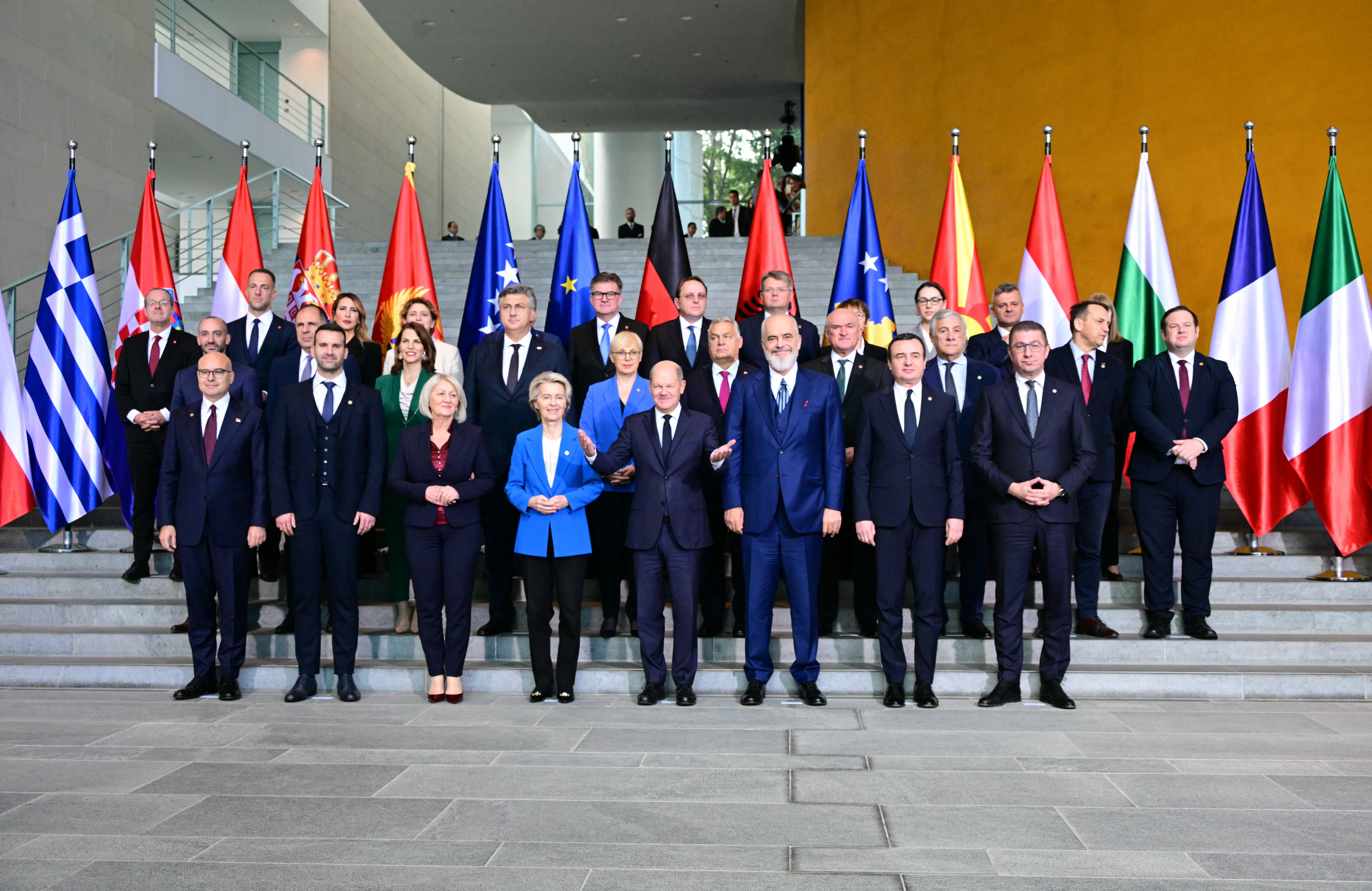 Στη διάσκεψη του Βερολίνου, προσκεκλημένοι του καγκελάριου Όλαφ Σολτς ήταν οι ηγέτες των έξι χωρών, Αλβανία, Βόρεια Μακεδονία, Σερβία, Μαυροβούνιο, Κόσοβο, Βοσνία Ερζεγοβίνη, καθώς επίσης η πρόεδρος της Κομισιόν Ούρσουλα φον ντερ Λάιεν και εκπρόσωποι άλλων ευρωπαϊκών χωρών. Την Ελλάδα εκπροσώπησε ο υπουργός Εξωτερικών Γιώργος Γεραπετρίτης.