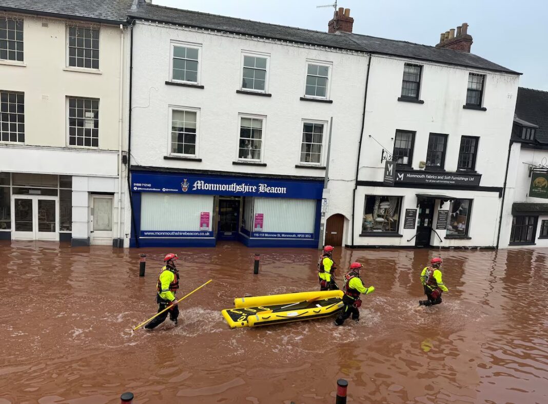 Στο Ηνωμένο Βασίλειο, σοβαρές πλημμύρες έπληξαν σήμερα την πόλη Μόνμουθ και τις γύρω περιοχές στη νοτιοανατολική Ουαλία.