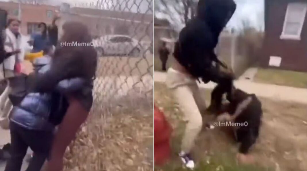 Το βίντεο δείχνει τα παιδιά να ρίχνουν τη μητέρα και το παιδί στο έδαφος, με ένα παιδί από τους επιτιθέμενους να κλωτσάει την 33χρονη στο πρόσωπο.