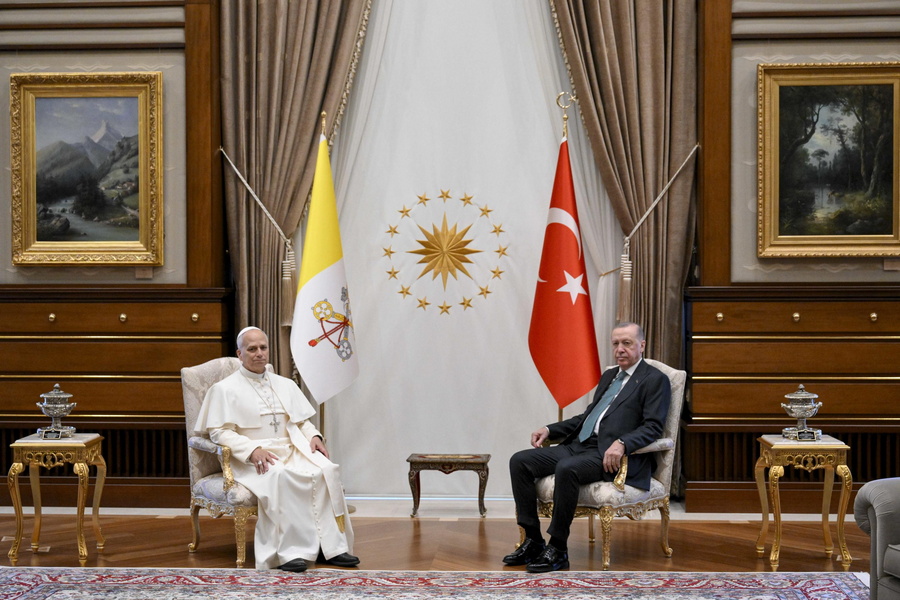 Ο Τούρκος πρόεδρος Ρετζέπ Ταγίπ Ερντογάν εξέφρασε την ικανοποίησή του για τη συνάντησή του με τον Πάπα Λέοντα ΙΔ', υπογραμμίζοντας τη σημασία της συνεργασίας τους για την αντιμετώπιση παγκόσμιων προκλήσεων όπως οι συγκρούσεις, οι ανθρωπιστικές κρίσεις και η κλιματική αλλαγή. Στη συνάντηση, οι δύο ηγέτες συζήτησαν θέματα που αφορούν την κοινή συνείδηση της ανθρωπότητας, δίνοντας έμφαση στην προστασία των μεταναστών και την εξάλειψη των αιτιών που τους αναγκάζουν να μεταναστεύσουν. Ο Ερντογάν τόνισε την ανάγκη για ειρήνη, δικαιοσύνη και ευσπλαχνία, εκφράζοντας την ελπίδα ότι η επίσκεψη του Πάπα στην Τουρκία θα αποφέρει οφέλη για όλη την ανθρωπότητα.