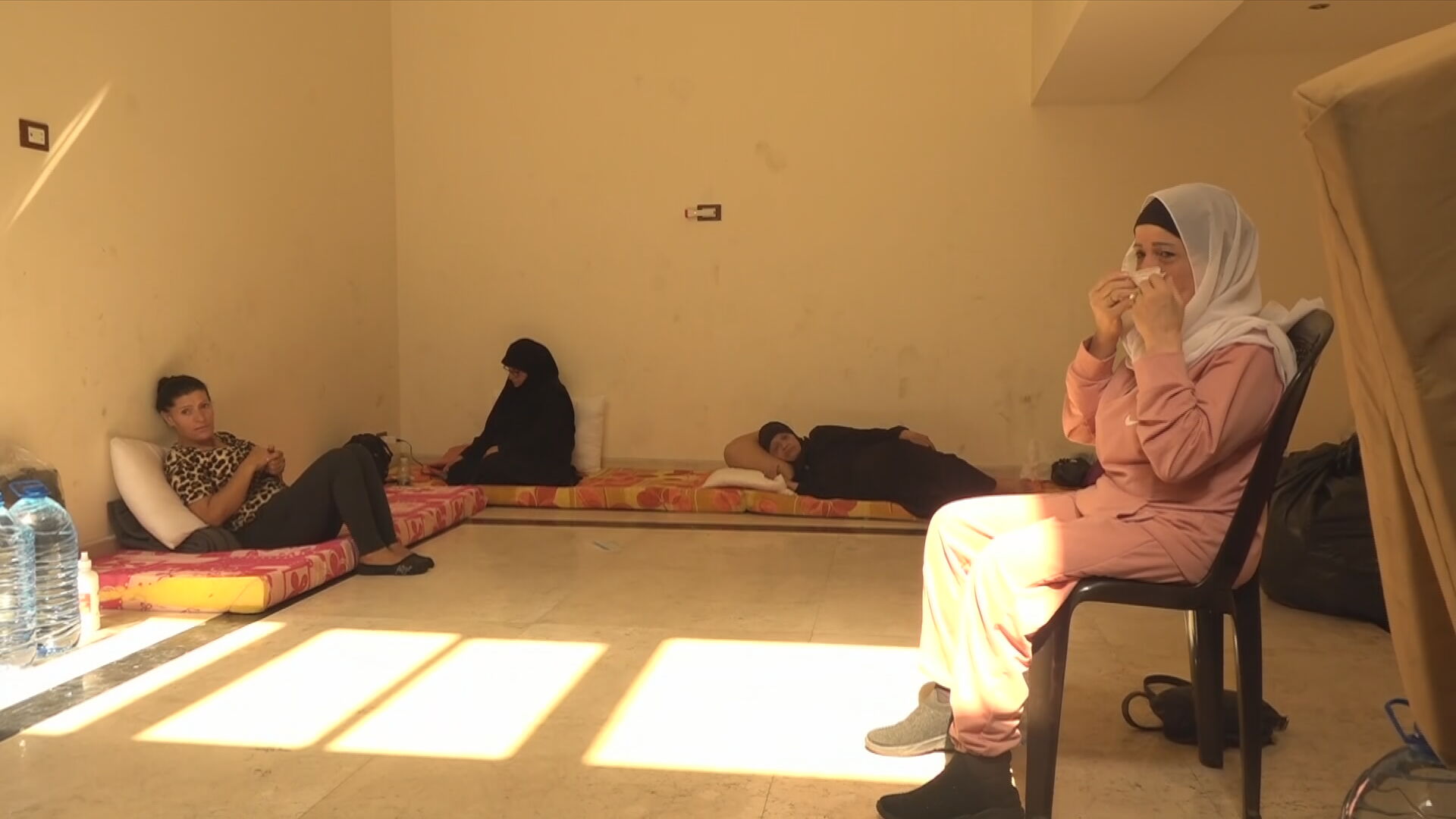 Η Ζένα, εκτοπισμένη από τη Ντάχιε, παρότι έχει μια προσωρινή στέγη, στερείται τα απαραίτητα: “Φύγαμε από το σπίτι μας, δεν μπορούσαμε να βρούμε αυτοκίνητο. Προσπαθούσαμε να βρούμε ταξί, βρήκαμε ένα αλλά ο οδηγός μας χρέωσε πολλά για να πάμε από τη Ντάχιε στο Ριάντ Ελ Σαλαχ, μείναμε εκεί και μετά ήρθαμε εδώ και υποφέρουμε ακόμα περισσότερο. Έχω τη μαμά μου μαζί”“.
