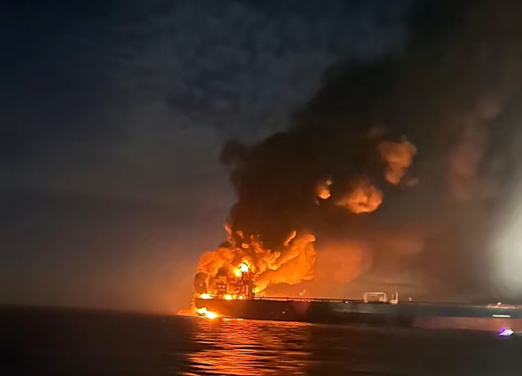 Το δεξαμενόπλοιο Kairos, που κατευθυνόταν προς τη Ρωσία, υπέστη εξωτερική πρόσκρουση και έπιασε φωτιά, με το πλήρωμα να διασώζεται με ασφάλεια.