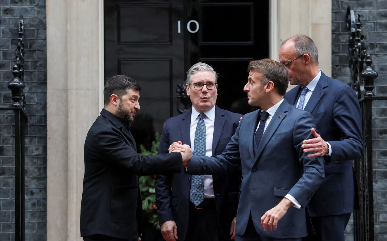 Σε μια βιαστικά προγραμματισμένη συνάντηση, ο Βρετανός πρωθυπουργός Κιρ Στάρμερ, ο Γάλλος πρόεδρος Εμανουέλ Μακρόν, ο Γερμανός καγκελάριος Φρίντριχ Μερτς και ο Ζελένσκι δήλωσαν ότι θέλουν να καταλήξουν σε συγκεκριμένα σχέδια σε περίπτωση ειρηνευτικής συμφωνίας. Βρετανική κυβερνητική πηγή δήλωσε ότι οι ηγέτες θα συζητούσαν τη χρήση των δεσμευμένων ρωσικών περιουσιακών στοιχείων.